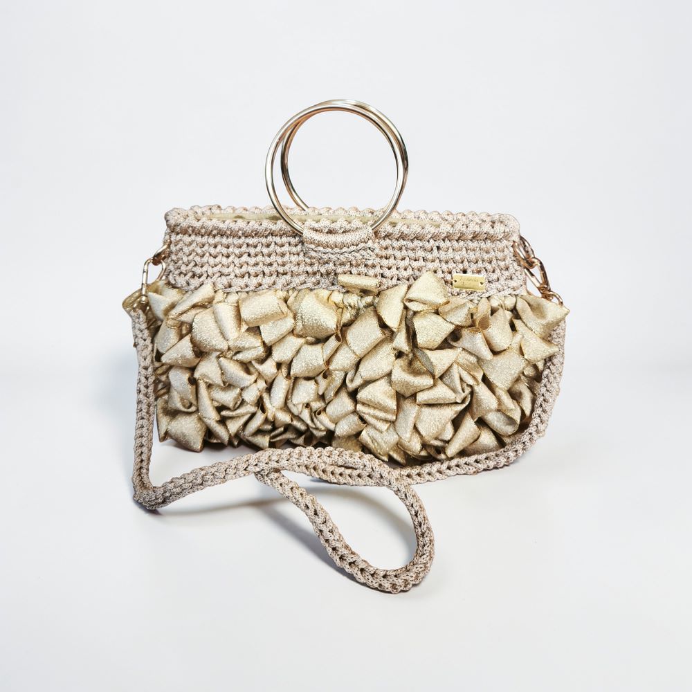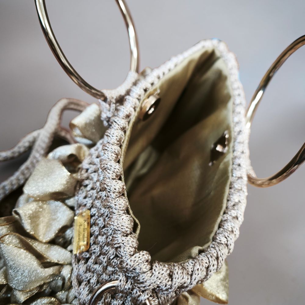 Прекрасно парче, дел од Златната колекција, изработено од ексклузивен макраме конец и рибон лента, со златни додатоци.