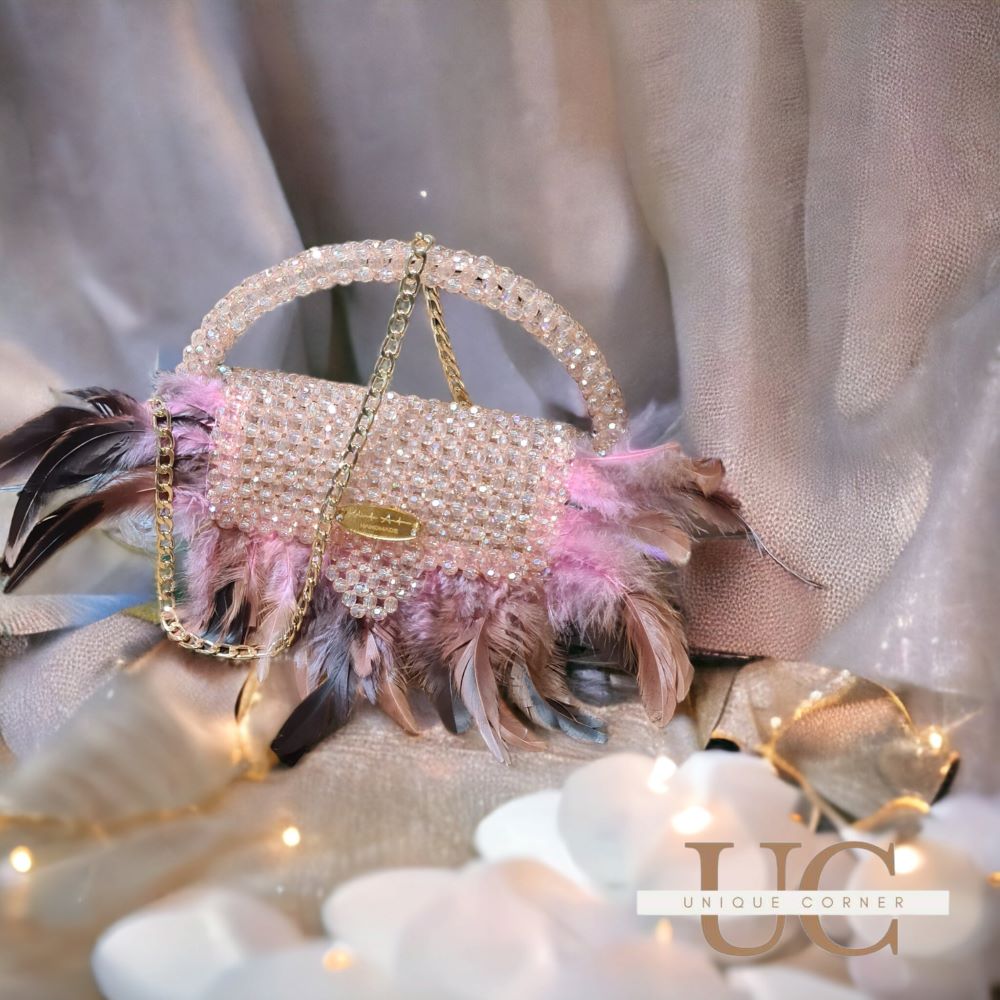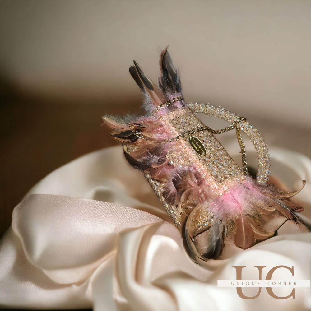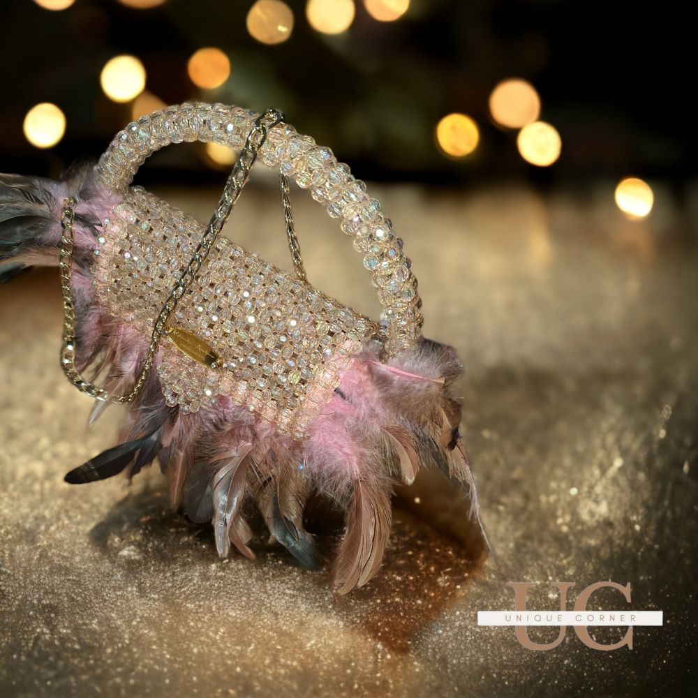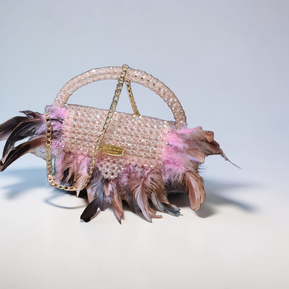 Ексклузивен модел изработен од монистри, со уникатни додатоци од пердуви и златни елементи.